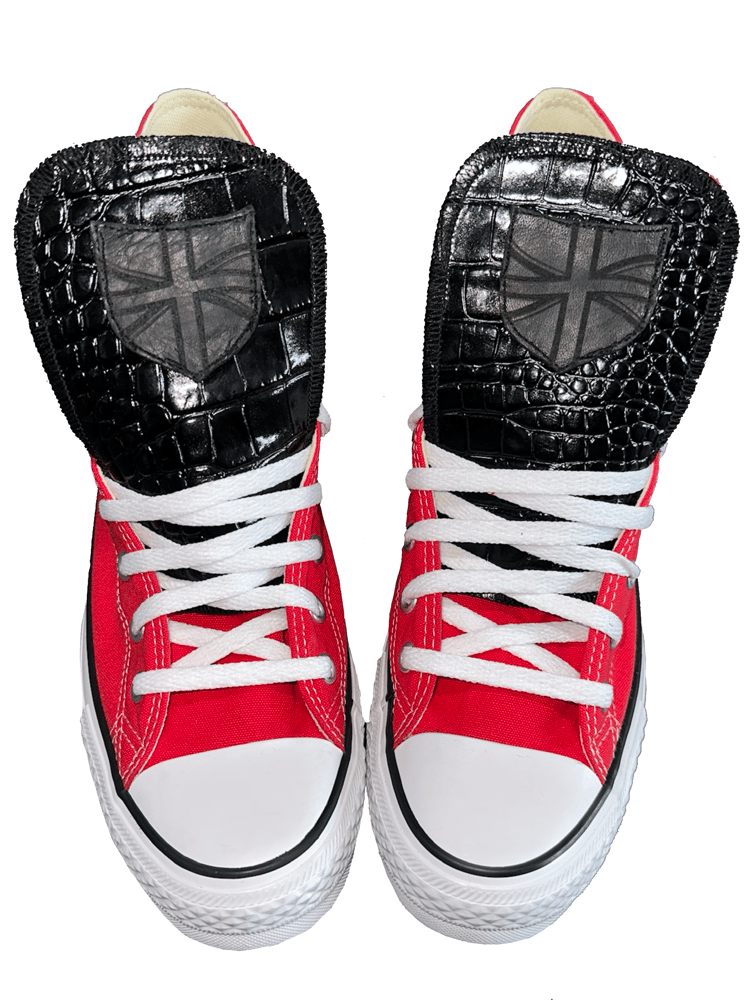 BLACK CROCODILE LEATHER SHIELD RED HIGH CHUCKS
